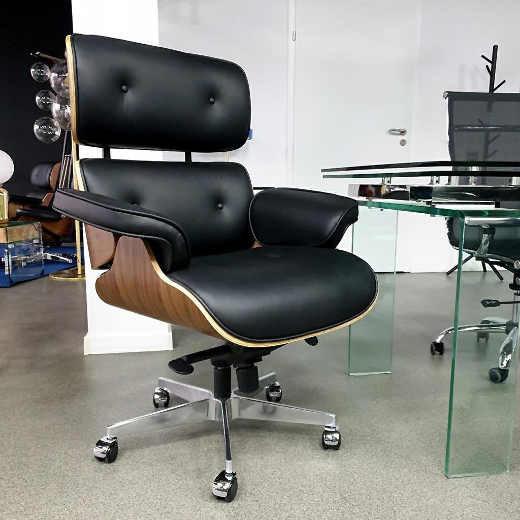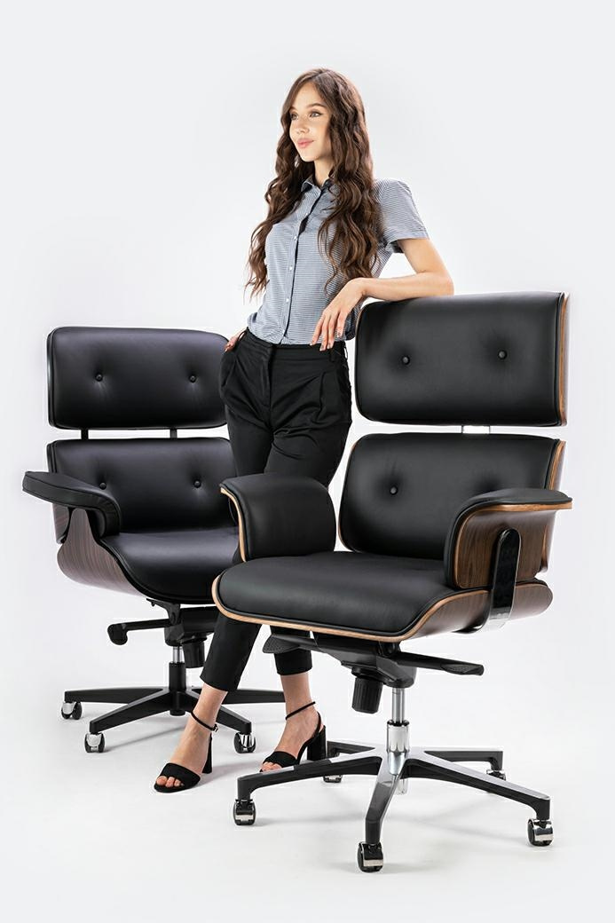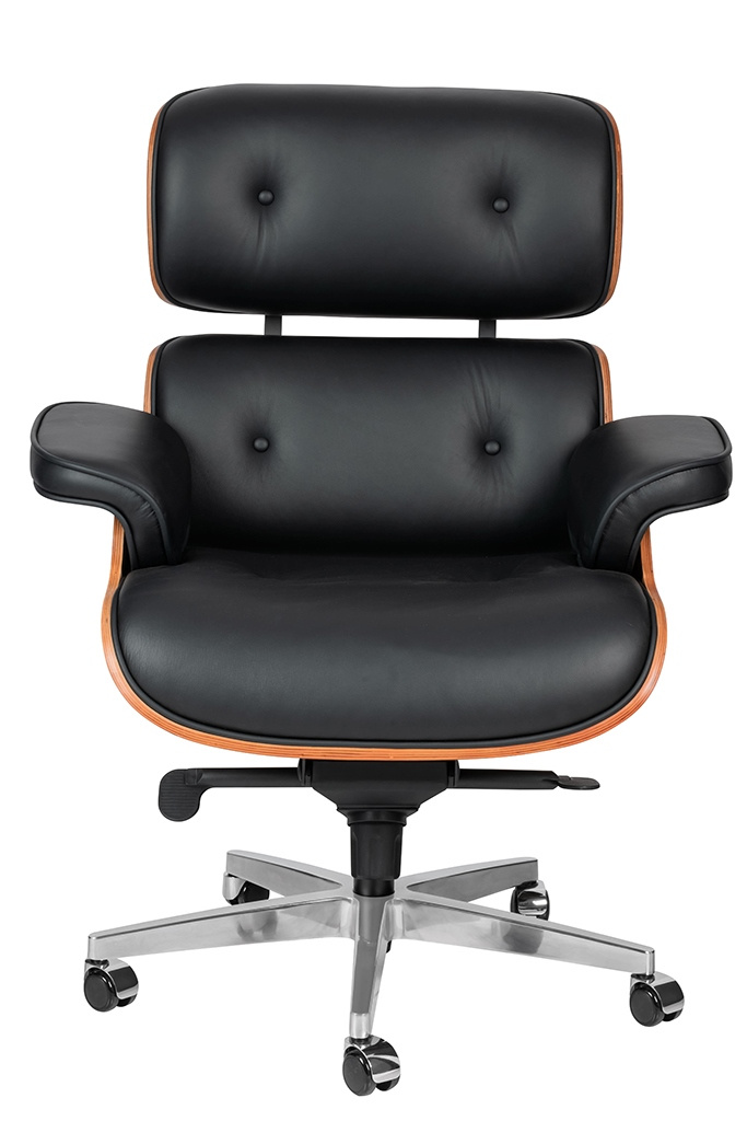 Fotel biurowy Lounge Gubernator czarny z orzechowym drewnem. Siedzisko, oparcie oraz podłokietniki tapicerowane są naturalną włoską skórą w kolorze czarnym. Korpus fotela został wykonany z giętego na ciepło drewna w kolorze orzechowym Fotel wyposażony w regulację wysokości z funkcją bujania i regulacją oporu. Całości dopełnia obrotowa podstawa z cichymi kółeczkami. Podstawa oraz elementy metalowe wykonane zostały ze stali polerowanej. Gubernator doskonale sprawdzi się w gabinecie, domowym biurze lub sali konferencyjnej. Wymiary: wys. 112 - 116 cm / szer. 84 cm / gł. 72 cm Wysokość do krawędzi siedziska: 52 - 56 cm Wysokość do podłokietników: 68 - 72 cm Siedzisko: szer. 48 - 62,5 cm / gł. 53 cm Oparcie: wys. 64 cm / szer. 62 cm Waga netto: 25 kg Wymiary opakowania: 75 cm / 80 cm / 86 cm Sposób wysyłki: paleta.
