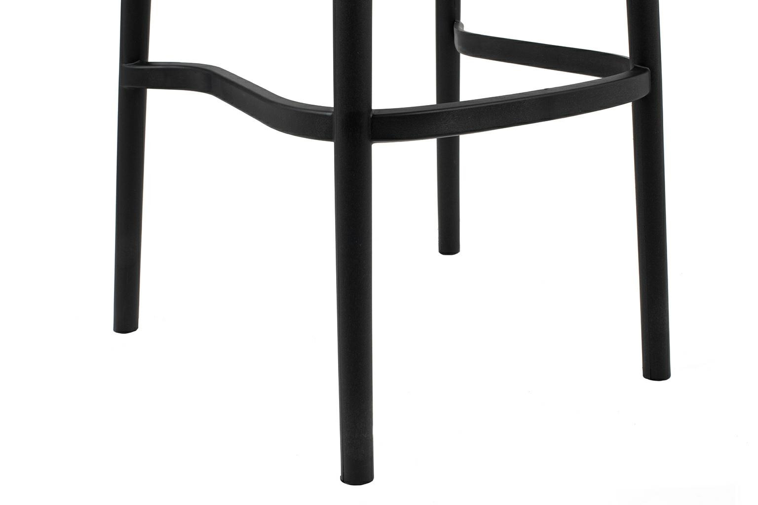 Krzesło barowe WICKY czarne. Zaprojektowane na wzór mebla ogrodowego. Ażurowe siedzisko i oparcie przypominające rattan powodują, że hoker nabiera lekkości. Ponadczasowe połączenie prostoty i podmiejskiego stylu kojarzy się z latem i wolnym czasem. Możliwość sztaplowania jest świetnym rozwiązaniem, aby zaoszczędzić przestrzeń i pozwala na praktyczne przechowywanie produktu. Krzesło barowe w całości wykonane jest z polipropylenu. Wymiary: wys. 103 cm / szer. 40,5 cm / gł. 52 cm Wysokość do krawędzi siedziska: 76 cm Siedzisko: szer. 36 cm / gł. 38,5 cm Oparcie: wys. 30,5 cm / szer. 40,5 cm Podnóżek: wys. 35,5 cm / gr. 3 cm Rozstaw nóg: przód szer. 40 cm / tył. szer. 50 cm / gł. 45,5 cm / wys. 74 cm Wymiary opakowania: 58 cm / 68 cm / 117 cm.