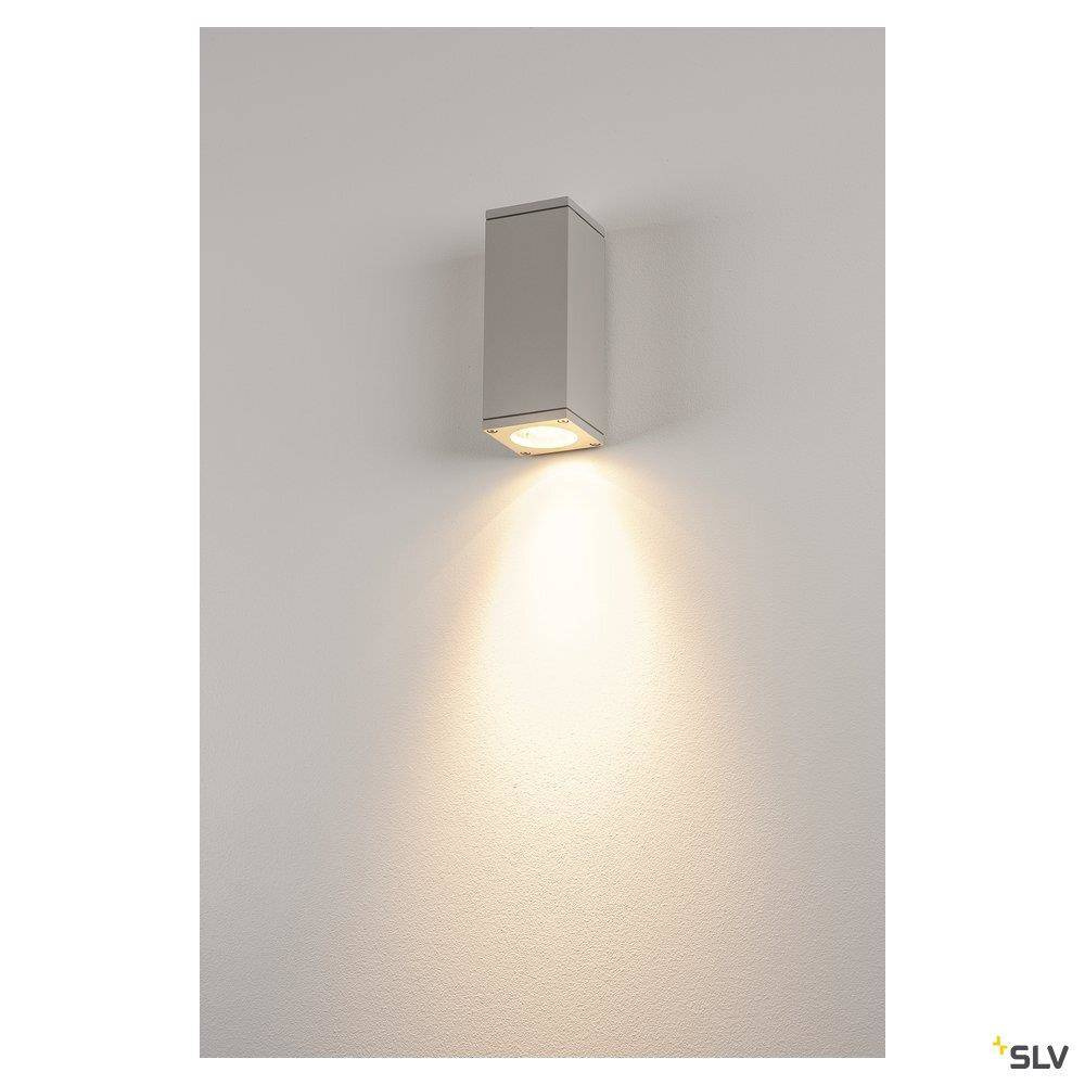 Nazwa cennikowa producenta: THEO WALL OUT, ścienna, kwadratowa, srebrnoszara, GU10, max. 35W