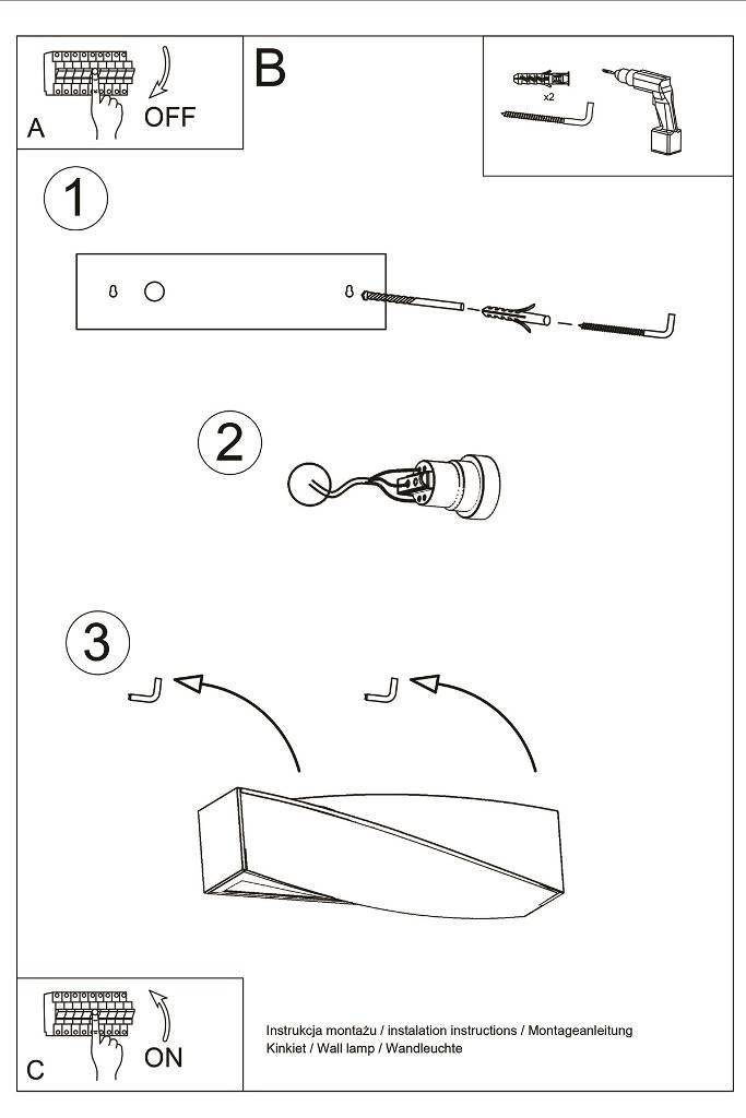 Źródło światła: E27, 2x max 60W, 50Hz, 220V, IP20