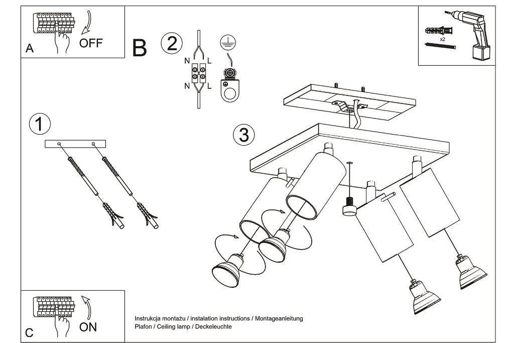 Źródło światła: GU10, 4x40W, 50Hz, 220V, IP20